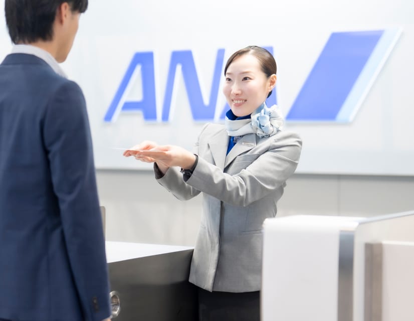 ANA国内線をご利用のすべてのお客様、特にサポートが必要な方へ、カウンターから搭乗口までの出発手続きを丁寧かつ迅速に行います。