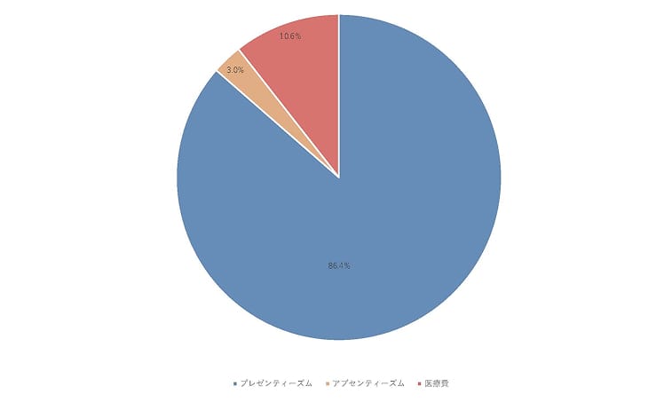- プレゼンティーズム:出勤していながらも、体調不良やメンタルヘルス不調などが原因で、従業員のパフォーマンスが低下している状態
