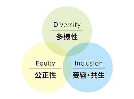 年齢・国籍・性別・価値観・障がいの有無などの「多様性」を尊重し、それを「強み」に更なる変革を起こせるよう、様々な取り組みを推進しています。