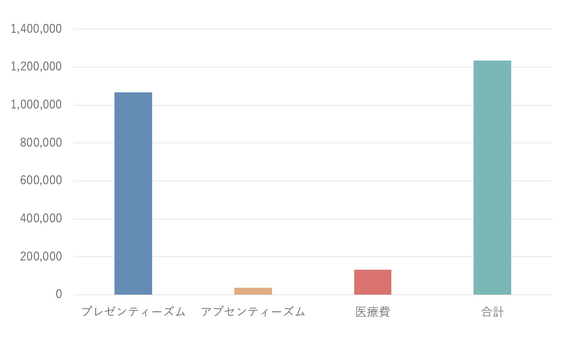 ANA新千歳空港(株)の健康関連コストのほとんどは、プレゼンティーズムによる損失(従業員の生産性低下)となっています。なお、一人当たり健康関連コストは以下のグラフの通りとなっています。