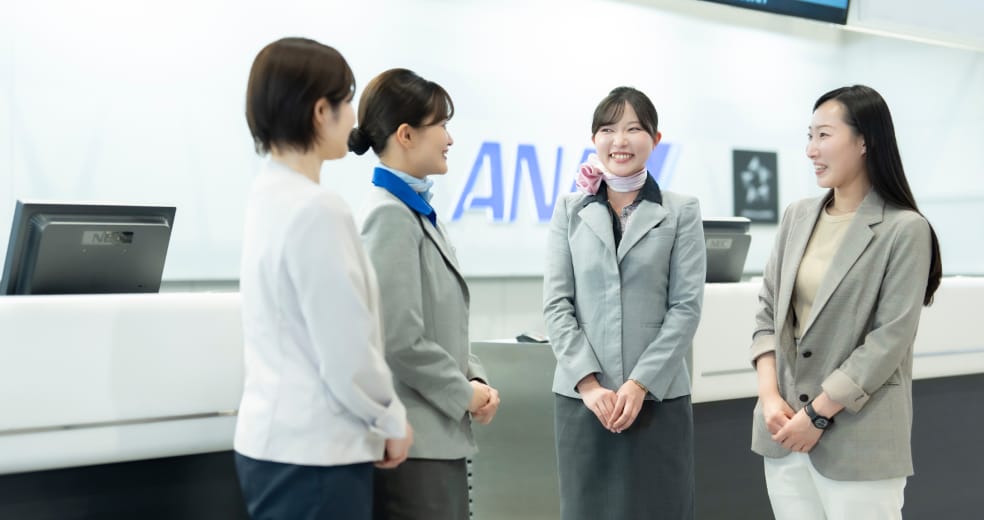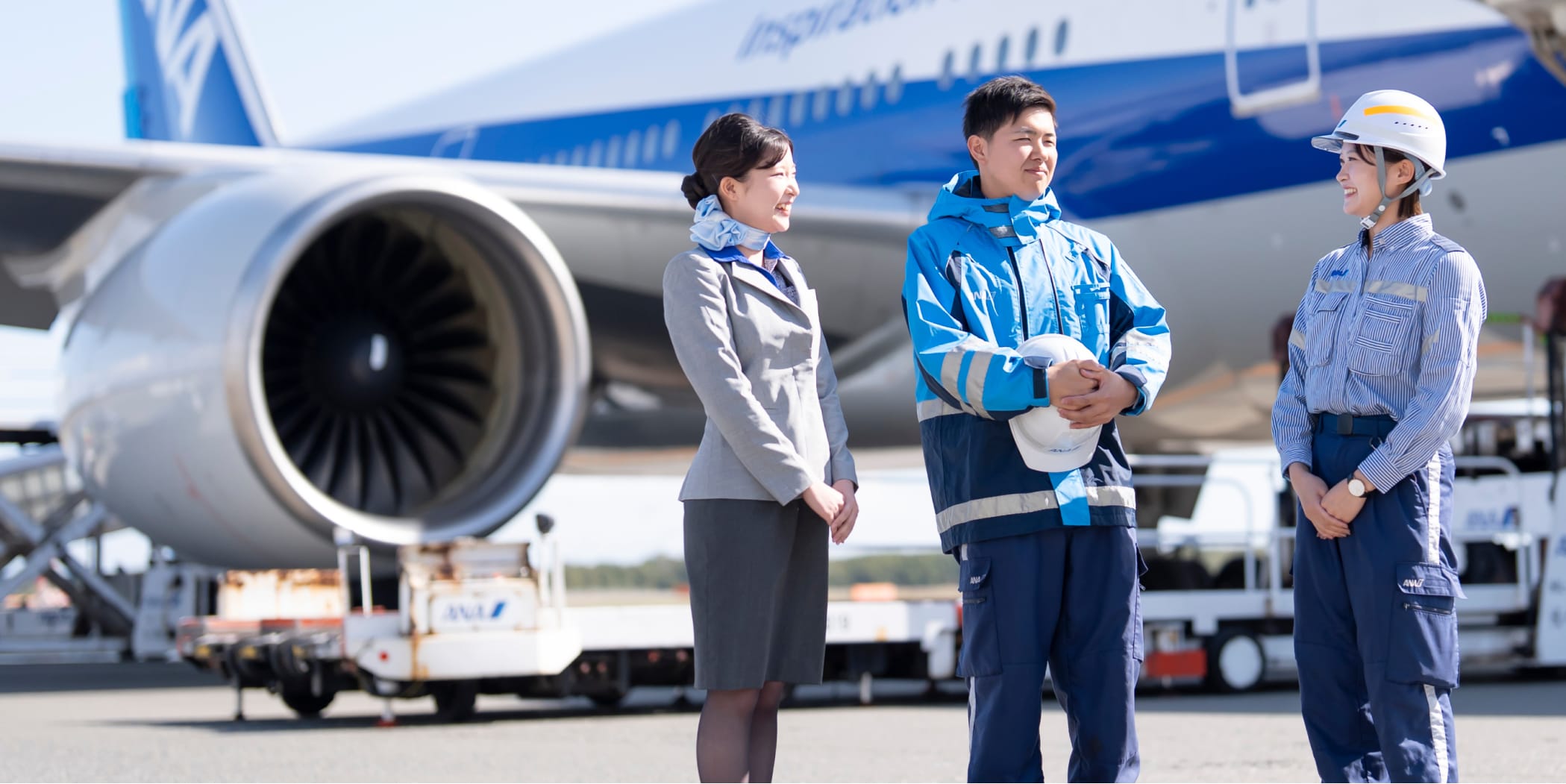 ANA新千歳空港で「あんしん、あったか、笑顔で元気に」を胸に、日々お客様と向き合い、ANAのフライトを支える社員たち。